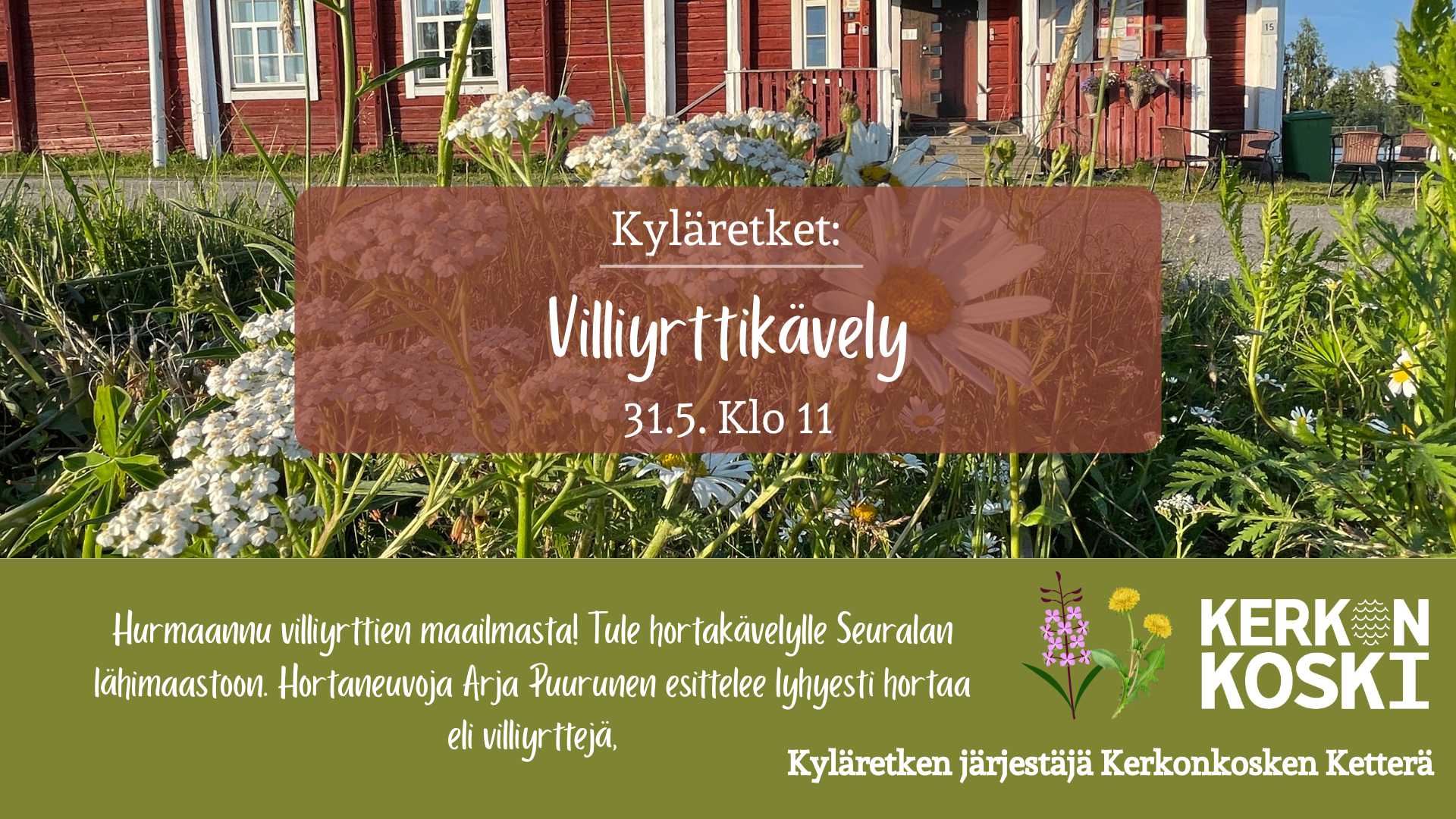 Villiyrttikävely lähtee sunnuntaina 31.5. klo 11 Seuralalta. Kyläretkelle tulee ilmoittautua etukäteen.  Mukaan ovat tervetulleita niin kyläläiset, mökkiläiset kuin kauempaakin saapuvat!