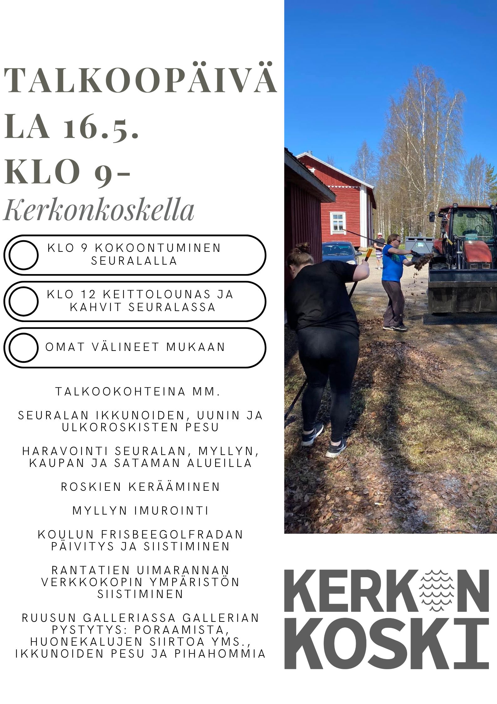 Perinteinen talkoopäivä Kerkonkoskella lauantaina 16.5.2025 klo 9->
